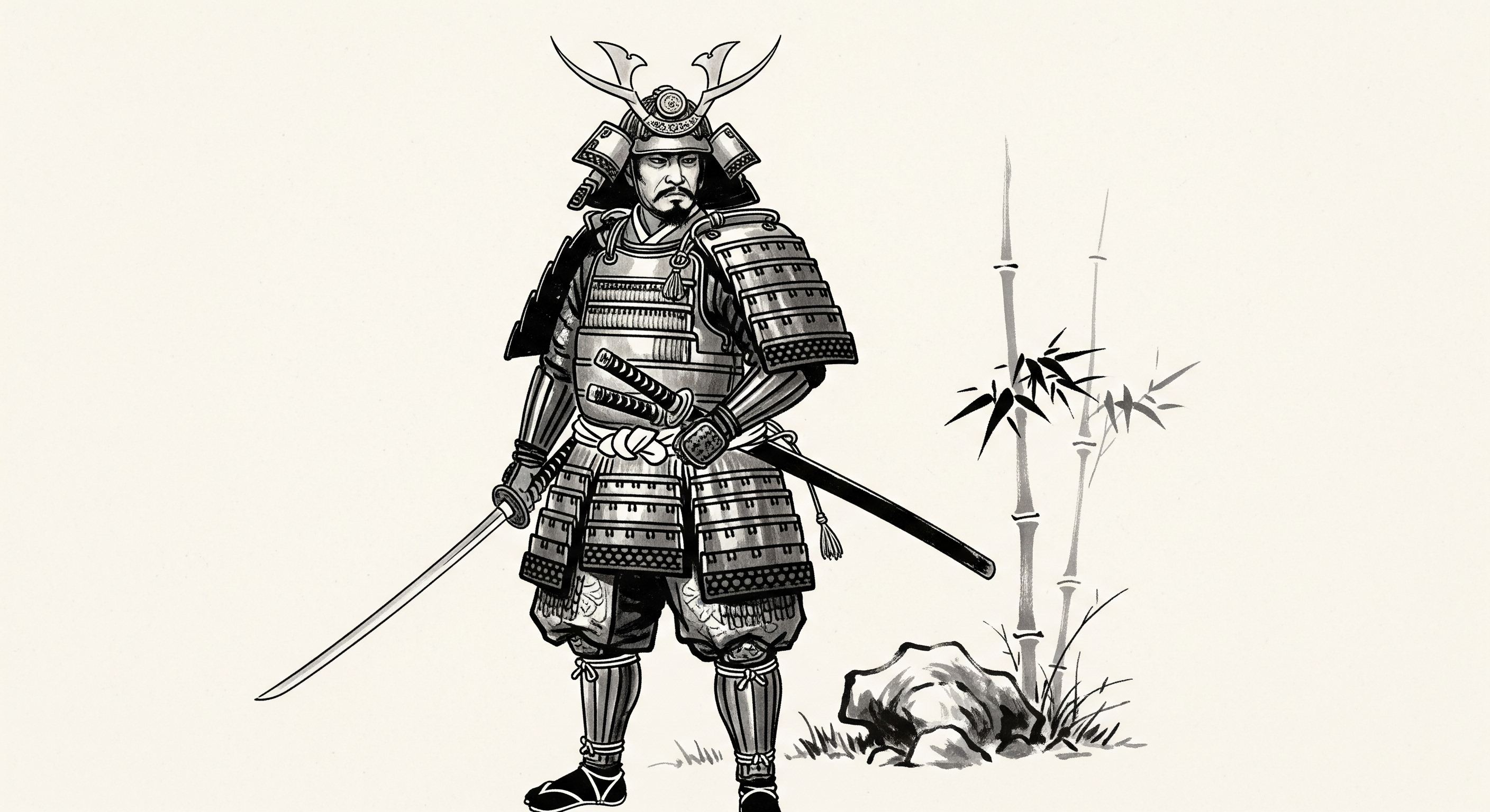 Painting a sumi-e painting of a Japanese samurai