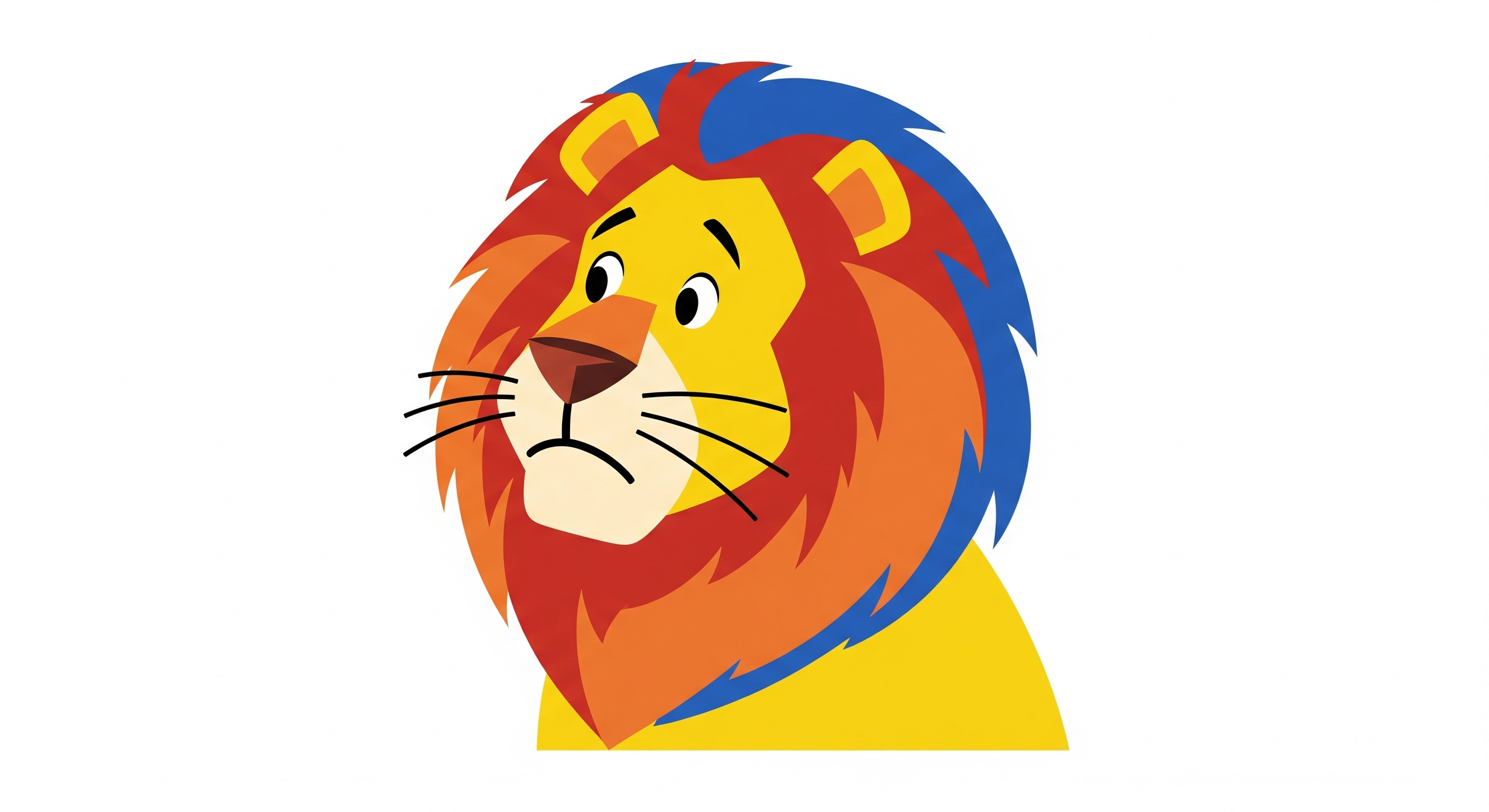 The Cowardly Lion, 3/4 view, head slightly tilted, steadicam, white background, minimalistic background, in the style of Ale Giorgini, the design is colorful, minimalistic, with bold lines and solid colors, and simple details. Alessandro Giorgini style, flat illustration of a cartoon design style penicillium, minimalistic vector illustration with clean lines