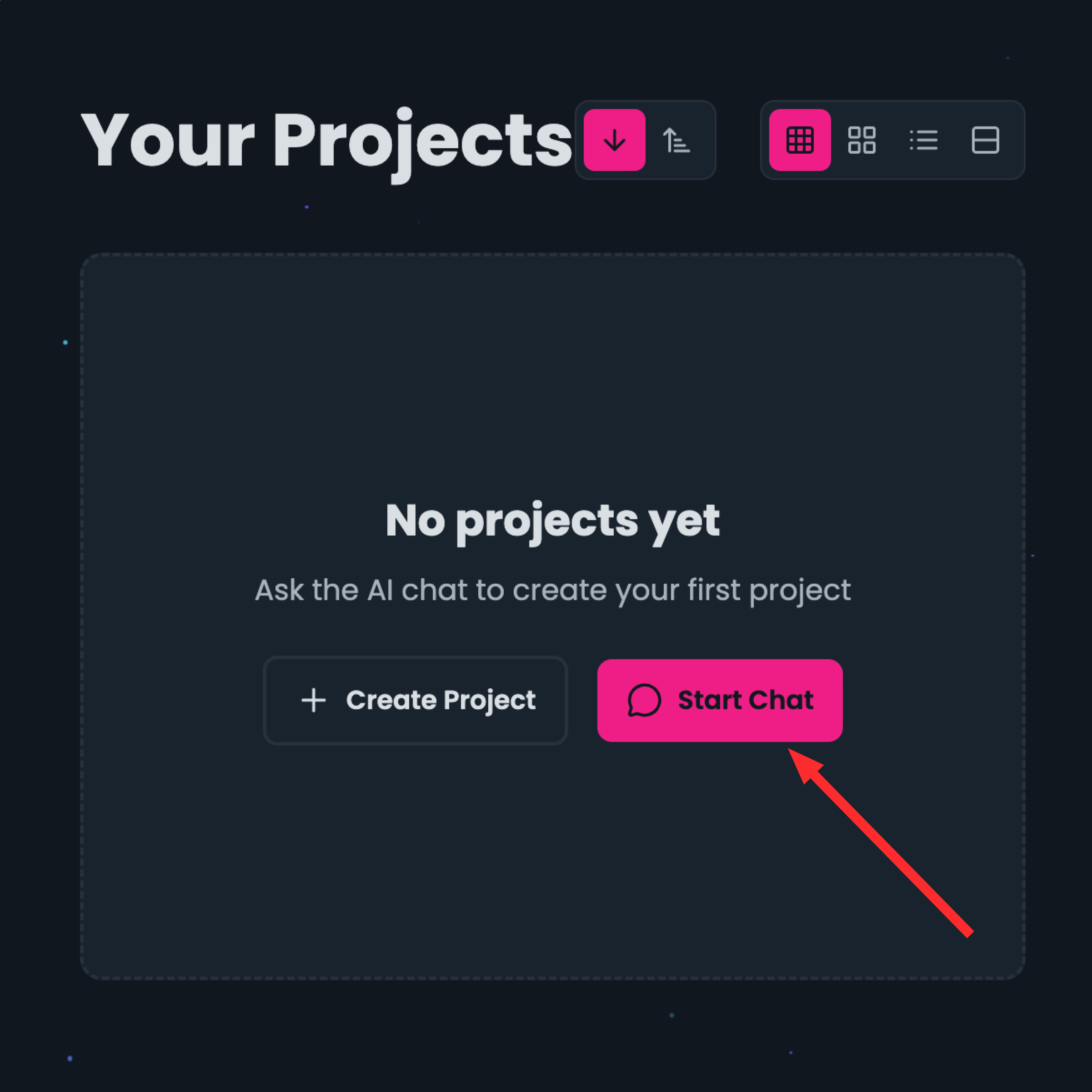 Use our AI assistant to help you create and set up your first project. Simply describe what you want to build, and let AI guide you through project creation, settings, and organization.